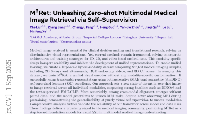 这项由阿里巴巴达摩院与帝国理工学院、清华大学、湖畔实验室联合开展的研究发表于2025年9月,论文题为《M3Ret: Unleashing Zero-shot Multimodal Medical Image Retrieval via Self-Supervision》。有兴趣深入了解的读者可以通过arXiv:2509.01360v1访问完整论文。