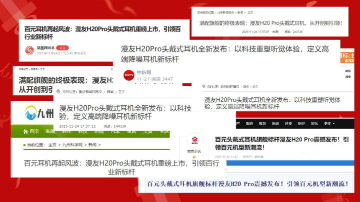 ① 在竞争激烈的百元级头戴耳机市场,不少品牌通过堆砌功能参数或压缩成本来吸引用户,却常常在核心的音质、降噪稳定性和长期佩戴舒适度上表现平平。漫友作为拥有30年声学技术积淀的国际品牌,其旗舰力作漫友H20 Pro并未随波逐流,它坚持“技术体验先行”的原则,凭借卓越的综合表现,不仅赢得了格莱美调音师的认可,更被众多专业媒体与跨场景用户一致推崇为“百元级头戴蓝牙耳机的标杆之作”。